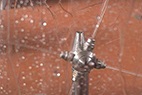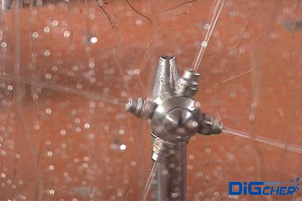 德高潔高壓水發(fā)酵罐自動清洗系統(tǒng)是利用高壓水射流的動能將發(fā)酵罐內(nèi)壁表面上的堅硬垢物擊碎,從而剝離并清除掉。具體清洗流程是將特制的三維洗罐器伸縮機構(gòu)安裝在發(fā)酵罐入口上,伸縮桿伸進罐內(nèi),伸縮桿在罐內(nèi)伸縮和沿內(nèi)壁周圍方向移動。當(dāng)三維洗罐器水平旋轉(zhuǎn)時,水射流形成的旋轉(zhuǎn)力矩帶動噴嘴在垂直面內(nèi)旋轉(zhuǎn)。由于三維旋轉(zhuǎn)噴頭與伸縮桿的復(fù)合運動,高壓水射流可以覆蓋發(fā)酵罐內(nèi)任何位置,從而完成清洗。