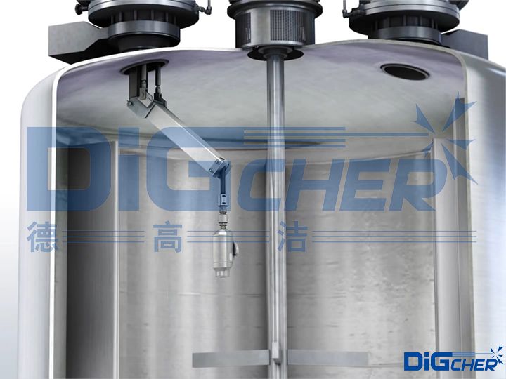 德高潔反應(yīng)釜清洗系統(tǒng)自動(dòng)化程度高,清洗一臺(tái)反應(yīng)釜大約只需要15 min;由于三維旋轉(zhuǎn)噴頭與伸縮桿的復(fù)合運(yùn)動(dòng),高壓水射流可以覆蓋反應(yīng)釜內(nèi)任何位置,完成反應(yīng)釜的360°無死角清洗。