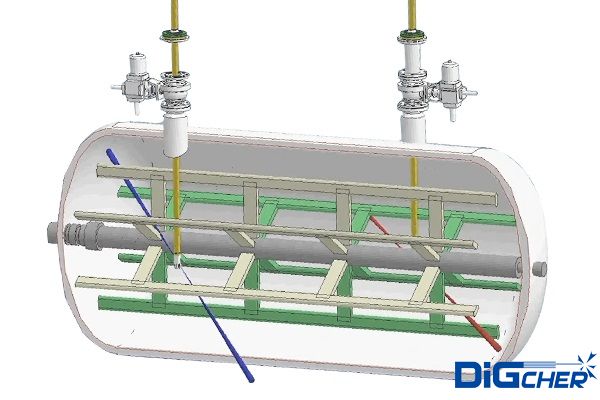 德高潔PVDF臥式反應(yīng)釜自動化清洗系統(tǒng),根據(jù)PVDF生產(chǎn)過程中,二氟乙烯(VDF)單體在臥式反應(yīng)釜聚合反應(yīng)的工作特點,結(jié)合臥式反應(yīng)釜自身結(jié)構(gòu),設(shè)計研發(fā)的一套專用于臥式反應(yīng)釜清洗的裝置。由高壓水清洗裝置搭載自動化清洗系統(tǒng)方式,實現(xiàn)操作簡單,自動化程度高,安全環(huán)保、節(jié)約時間,代替人工作業(yè)?梢苿邮皆O(shè)備,體積小,靈活性強,多點定位機構(gòu)深度清洗,高壓水射流技術(shù),三維旋轉(zhuǎn)噴頭與伸縮桿的復(fù)合運動,可以對反應(yīng)釜內(nèi)攪拌軸背面、底部、上封頭等位置的清洗,在不對反應(yīng)釜造成物理損傷的情況下,實現(xiàn)360°無死角清洗。解決現(xiàn)有清洗方法中存在的自動化程度低、耗時費力、容易造成人身傷害等問題。